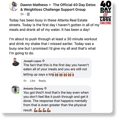 We stand by this program. If you follow the plan and don’t feel a difference in your energy, focus, and body after 40 days—we’ll make it right.